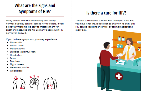 HIV informational folding pocket book for awareness, for sharing in clinic or at events.