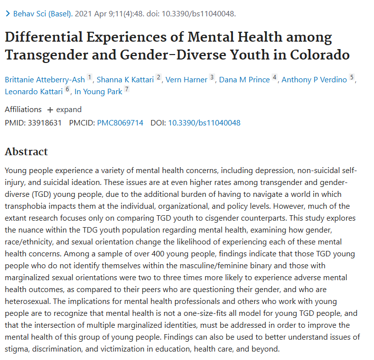 Differential Experiences of Mental Health among Transgender and Gender-Diverse Youth in Colorado by Brittanie Atteberry-Ash, Shanna K Kattari, Vern Harner, Dana M Prince, Anthony P Verdino, Leonardo Kattari, In Young […]